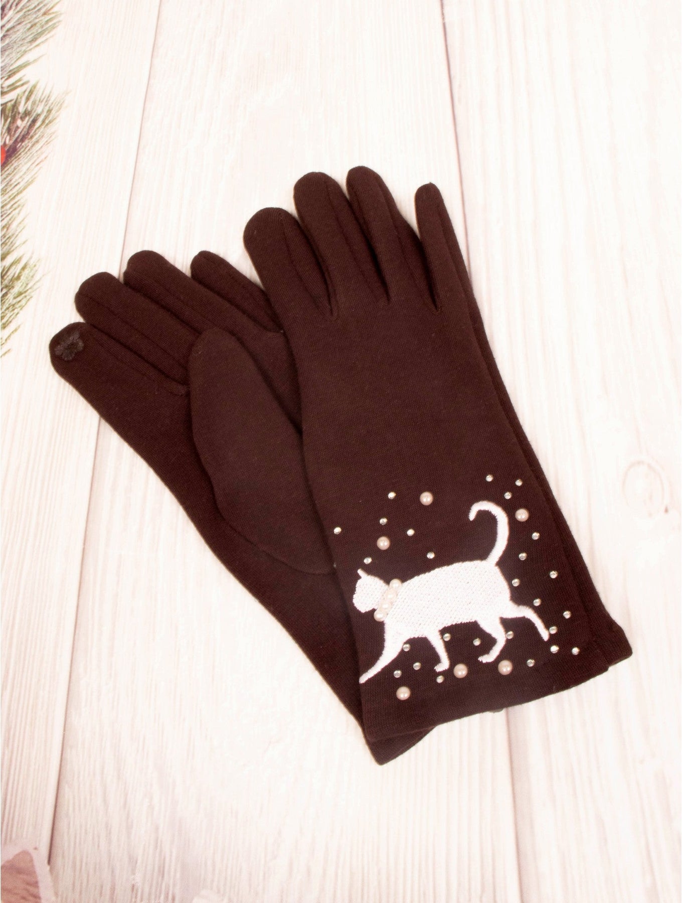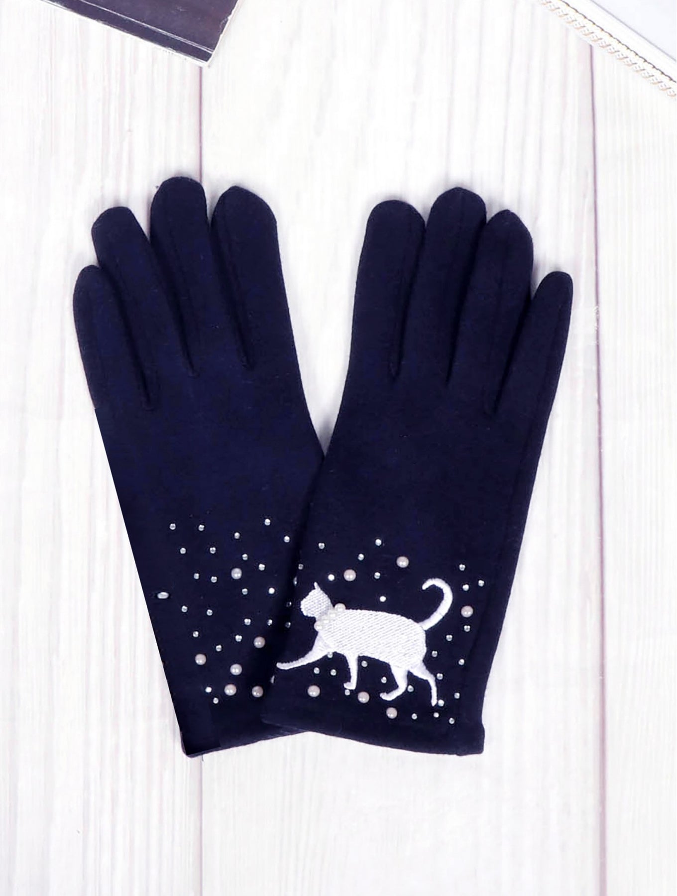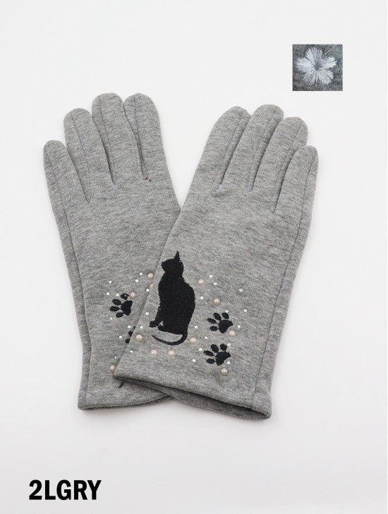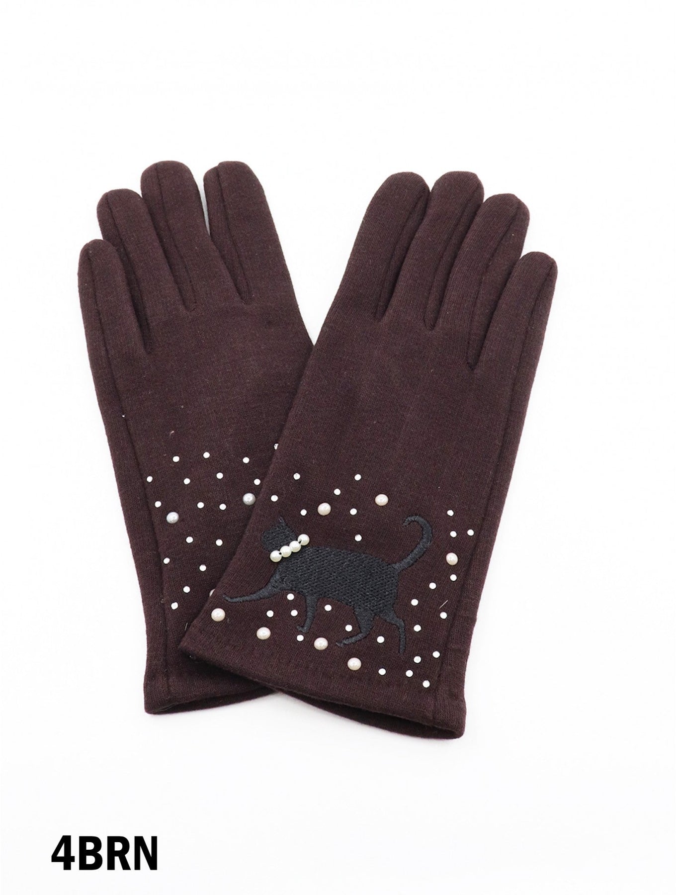 Ladies soft blend gloves. Cute cat pattern Touch Screen Glove. Rhinestone and pearls detail. Gloves touch screen capable