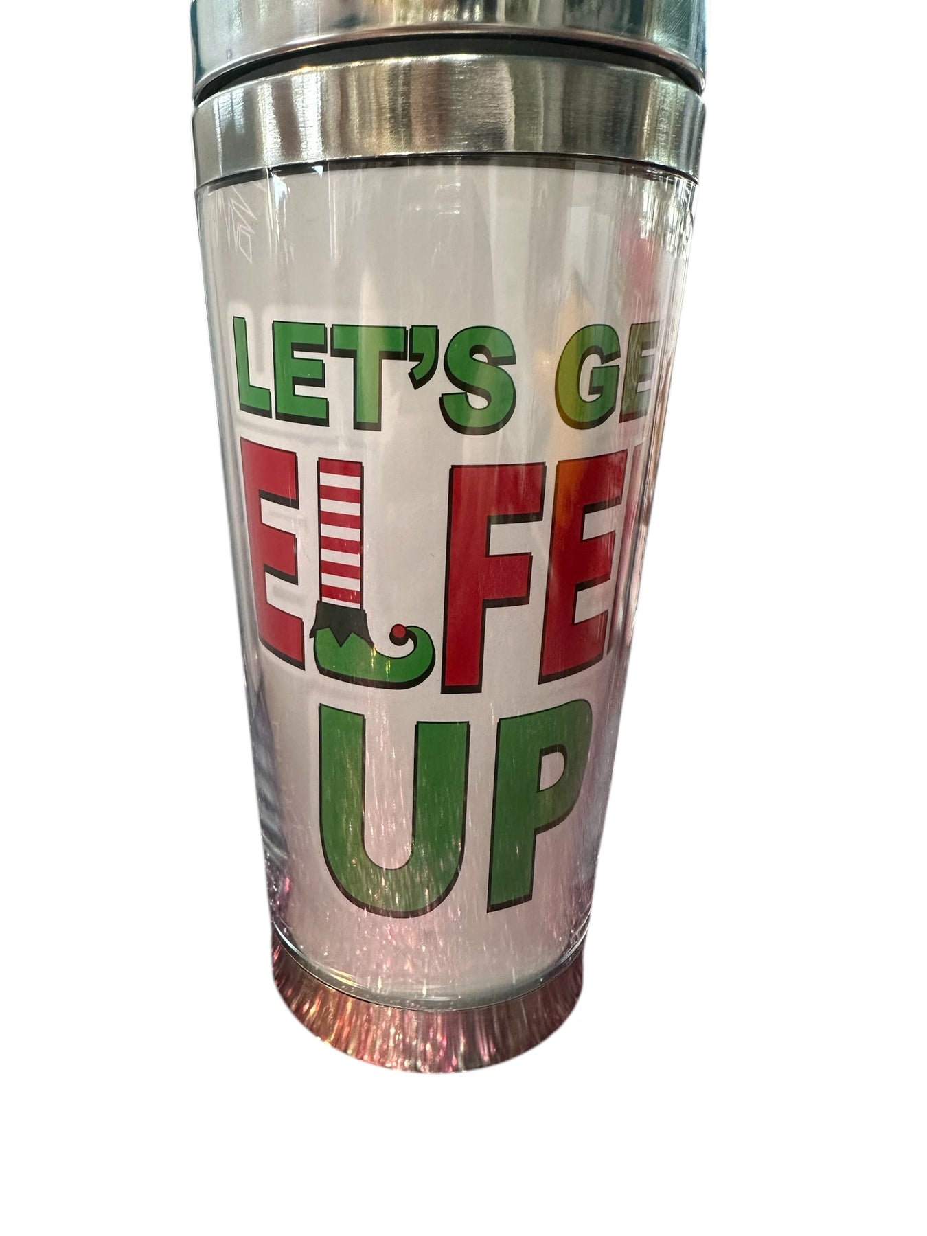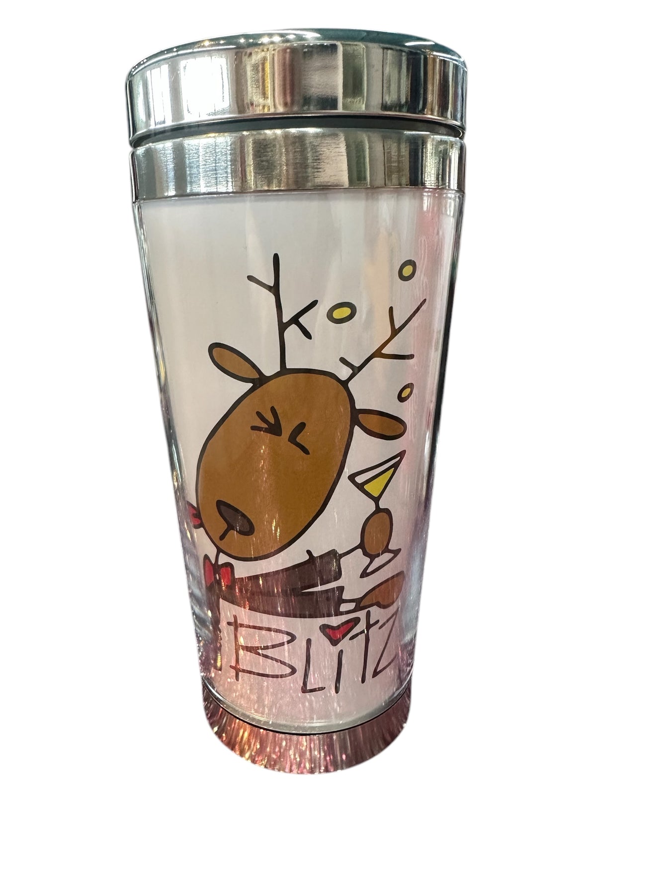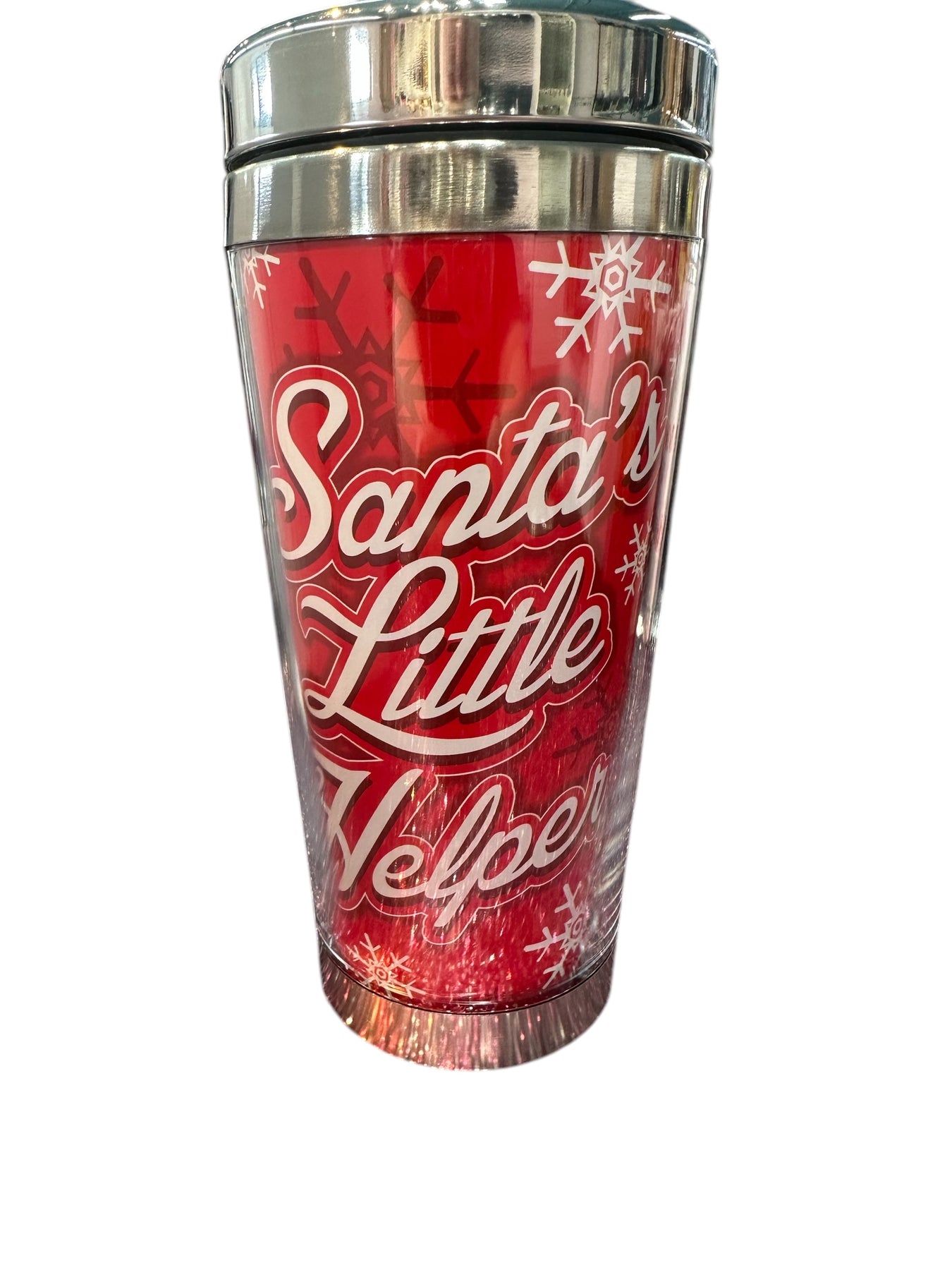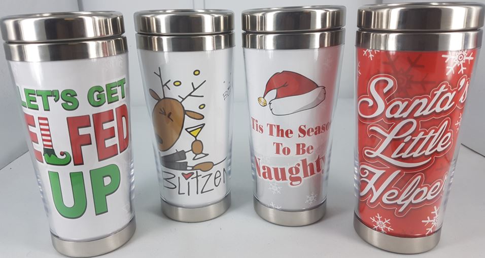 Merry Frickin Xmas! These travel mugs have a unique twist on top and are a metal insert. Most lids for this are pop off and can come off and create a spill or burn the user.