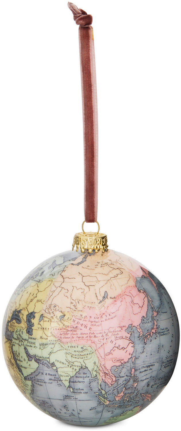 PREMIUM QUALITY: Decorative globe ornament with a ribbon hanger, packaged securely in a plain box, is made from polyfoam with an epoxy finish.
