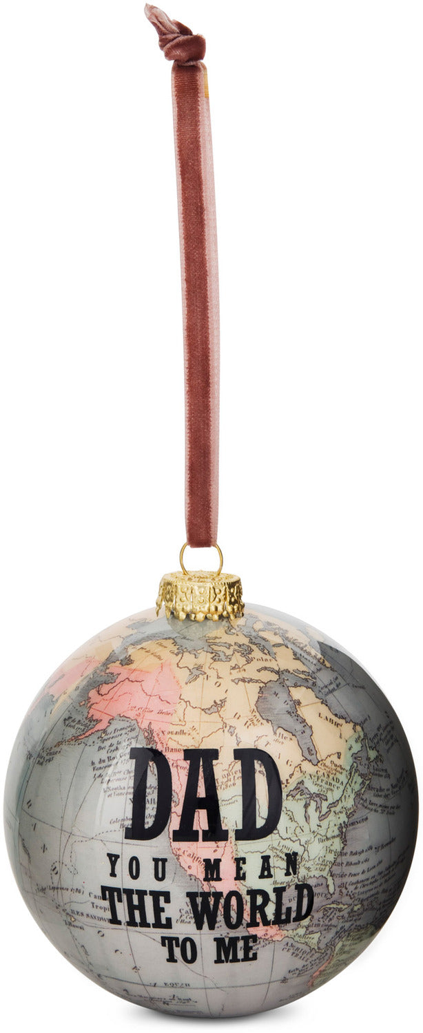"Dad You Mean The World To Me" text and world detailing are both printed onto the globe.