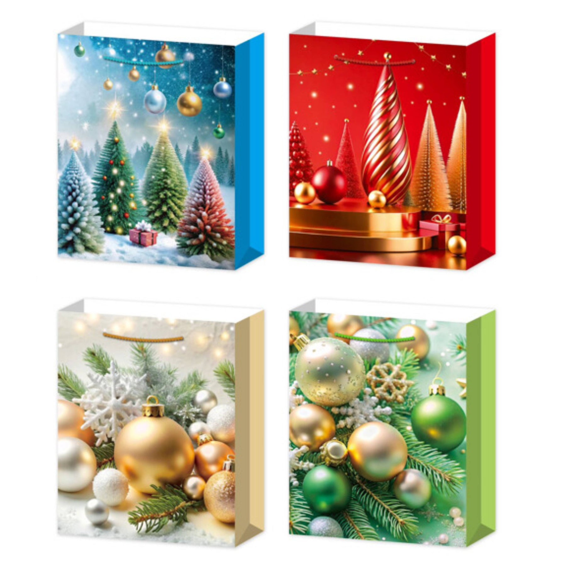 A perfect choice for wrapping holiday gifts with ease and style, these assorted Christmas Gift Bags make your holiday gifting extra special. Adorned with Xmas tree and ornament prints in assorted colors, these bags add a sophisticated sparkle to any present.