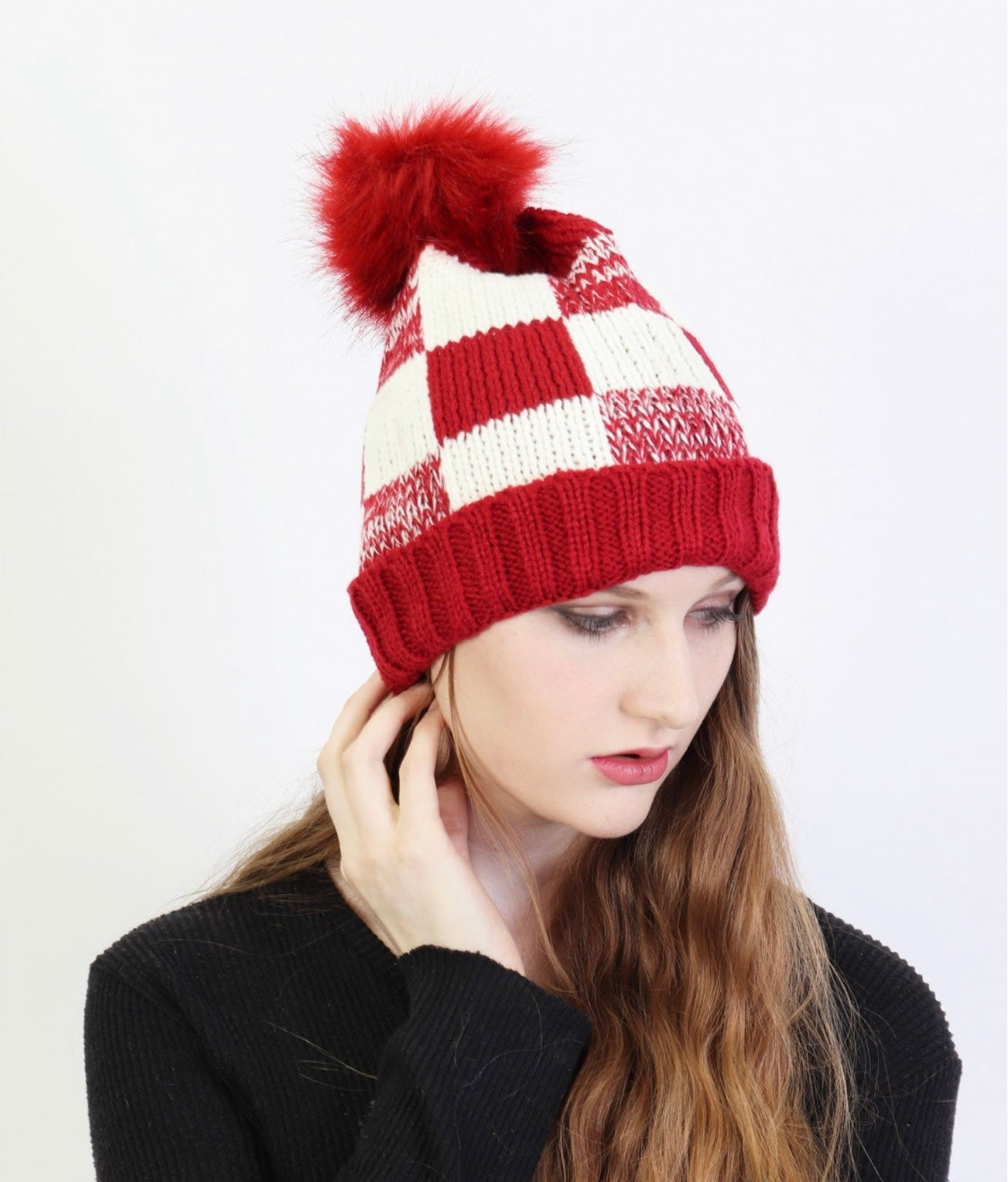 Knitted toque with pom bobble detail. Super warm and soft. Materials: