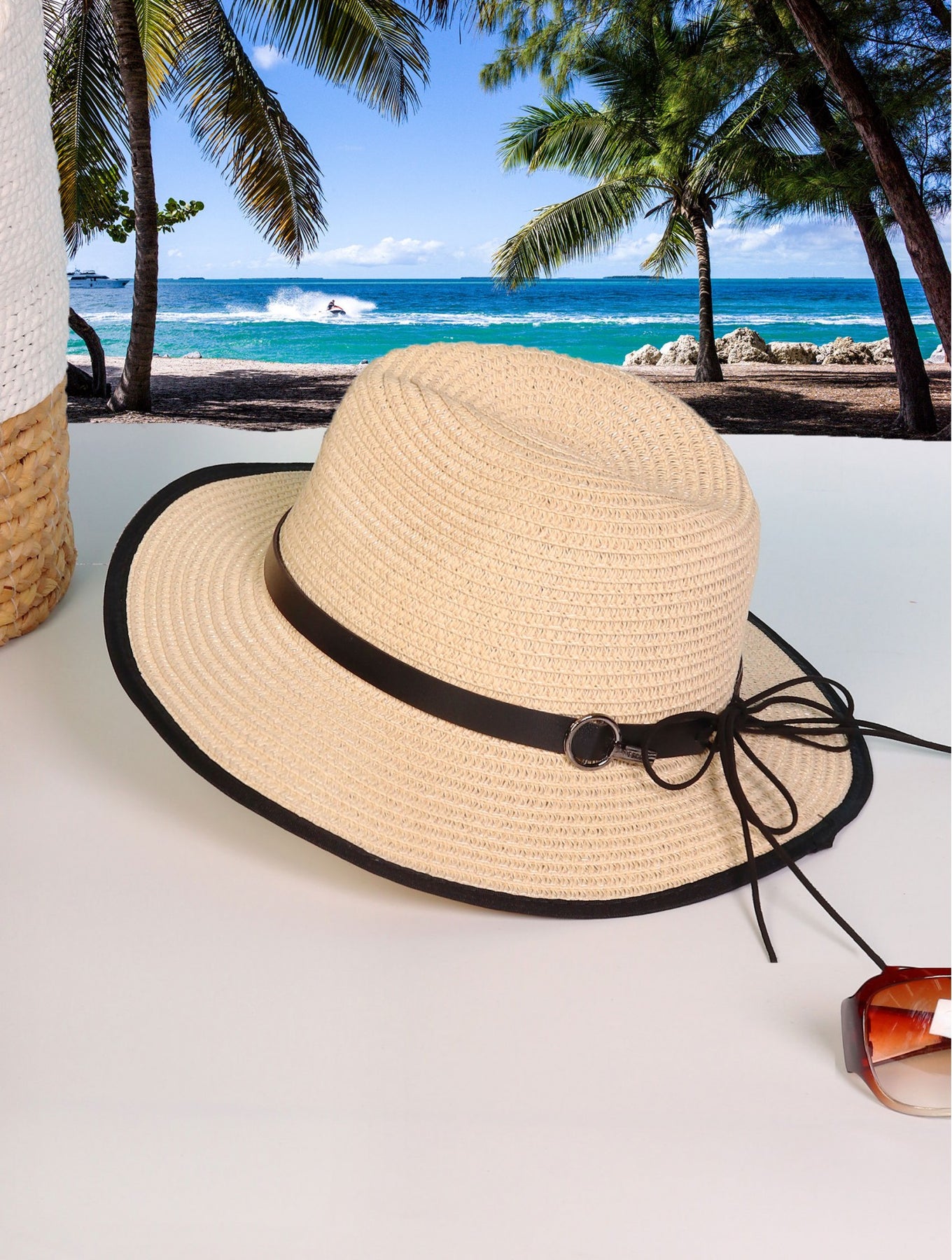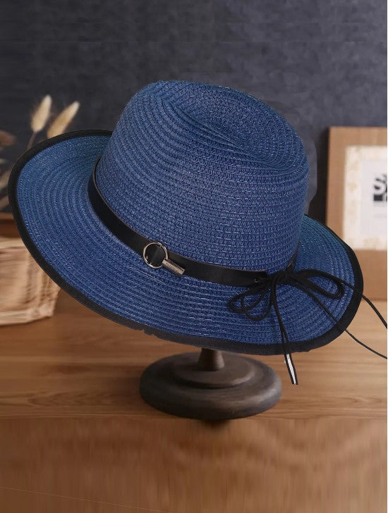 Wide Brim Summer Hat W/ Strap and Bow. Adjustable to fit a variety of head sizes