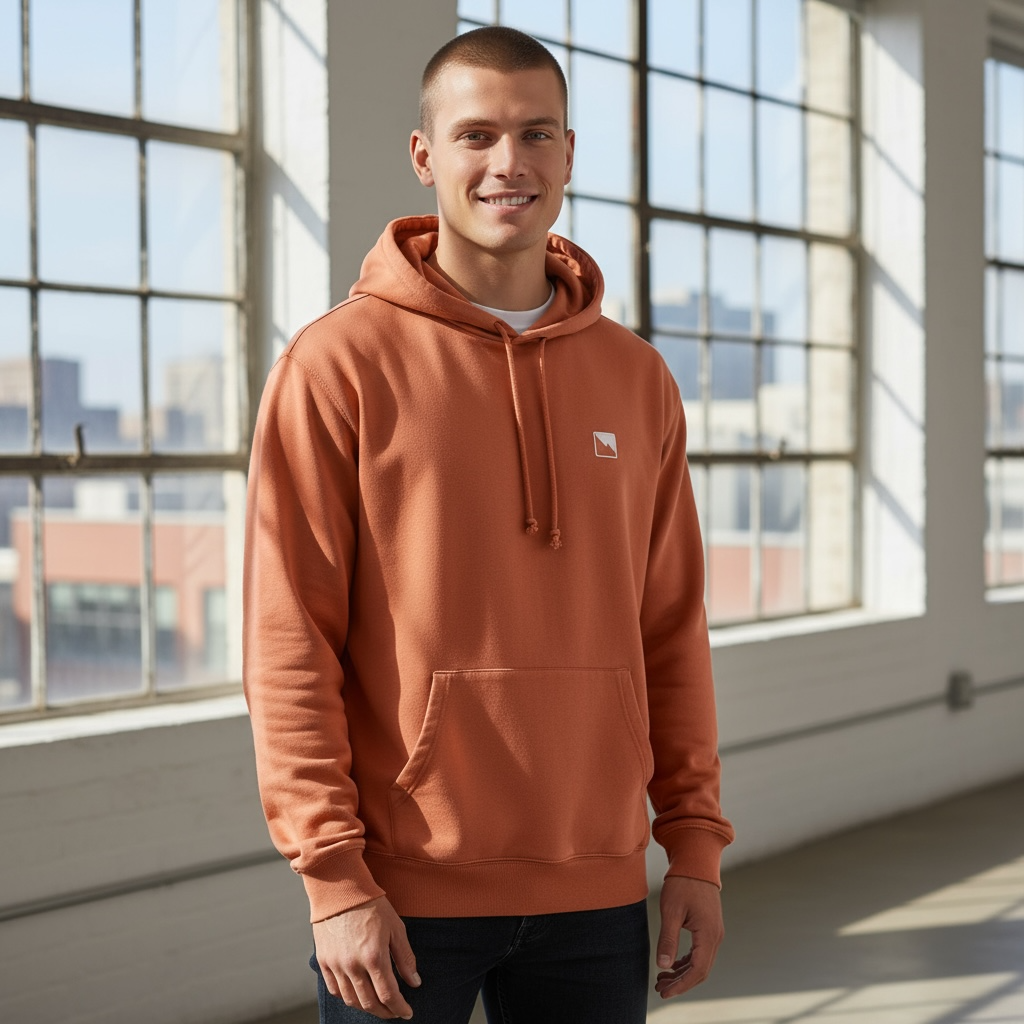 The Hoodie W/Embroidery - Burnt Coral is the perfect solution to these common problems. This men’s embroidered hoodie combines fashion, durability, and comfort, making it a standout addition to any wardrobe.