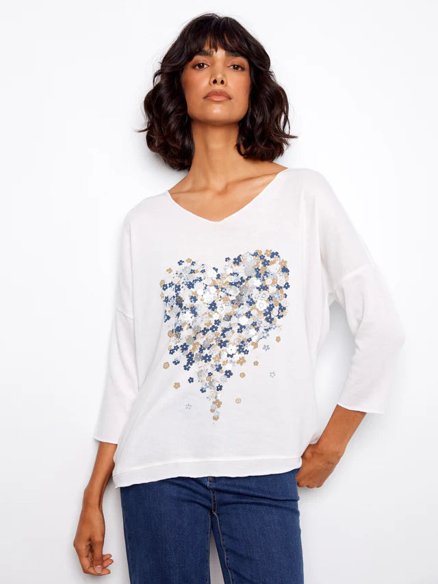 Step into a romantic vibe with this delightful V-neck top. Its heart-inspired floral print is ideal for expressing your fun-loving nature. Made from a soft fabric blend, it offers a comfortable fit, making it perfect for wearing from day to night. Perfect for expressing your joyful nature, this white top is a must-have addition to your spring wardrobe.