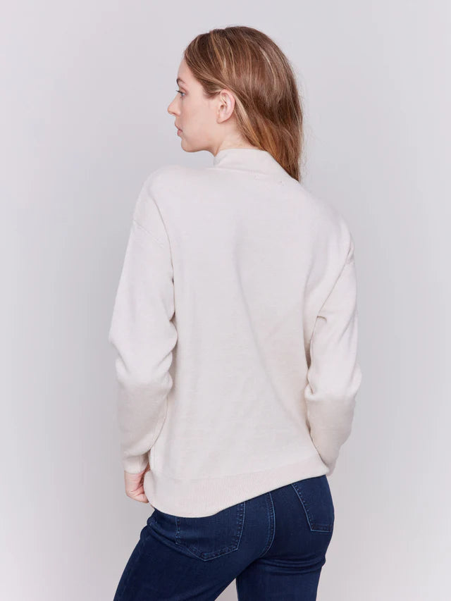 Mock Neck Sweater with Embroidered Hearts