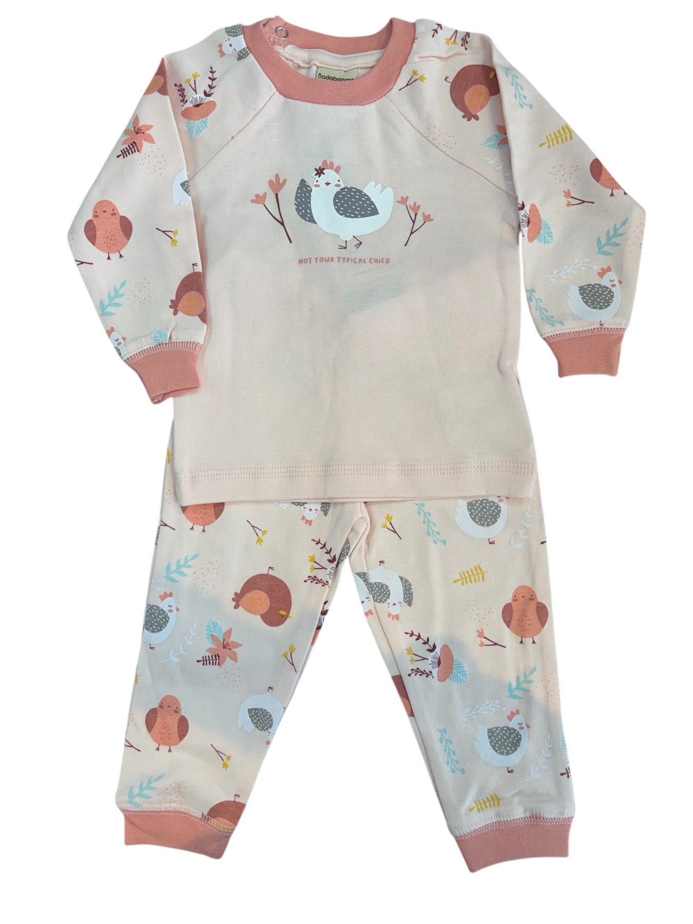 Make bedtime easier and more comfortable by choosing the Cool Chicks 2 Pieces Set Long Sleeve Top With Pant. Give your baby the gift of a restful night and wake up to a smile with this reliable baby PJ set designed for all-night comfort.