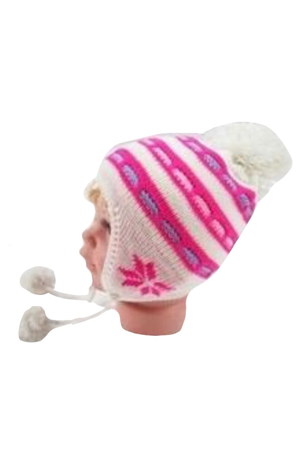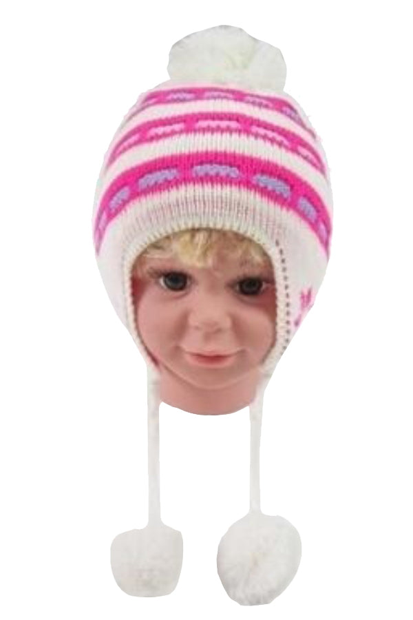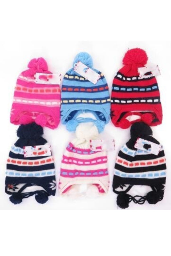 Kids Striped Pom Pom Decor Stockinette Stitch Knit Fleece Lined Ear Muff Trooper Beanies