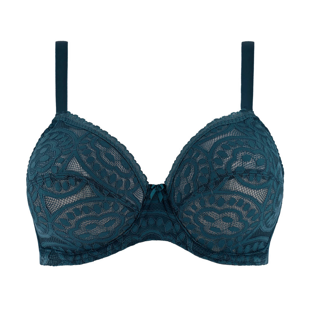 • For ultra feminine support, be seduced by the underwired full cup bra, perfectly fitting your breasts.  All width jacquard lace underwired full cup plus size bra, with a geometrical pattern, elastic polyamide elastane, mixing veil unveil areas for a transparency play.  A little bow satiny decorates the cleavage of the underwired full cup plus size bra.  A fancy elastic trim matching the lace, underscores the details of the underwired full cup plus size bra.  The underwired full cup plus size bra straps provide the widest range of adjustment.