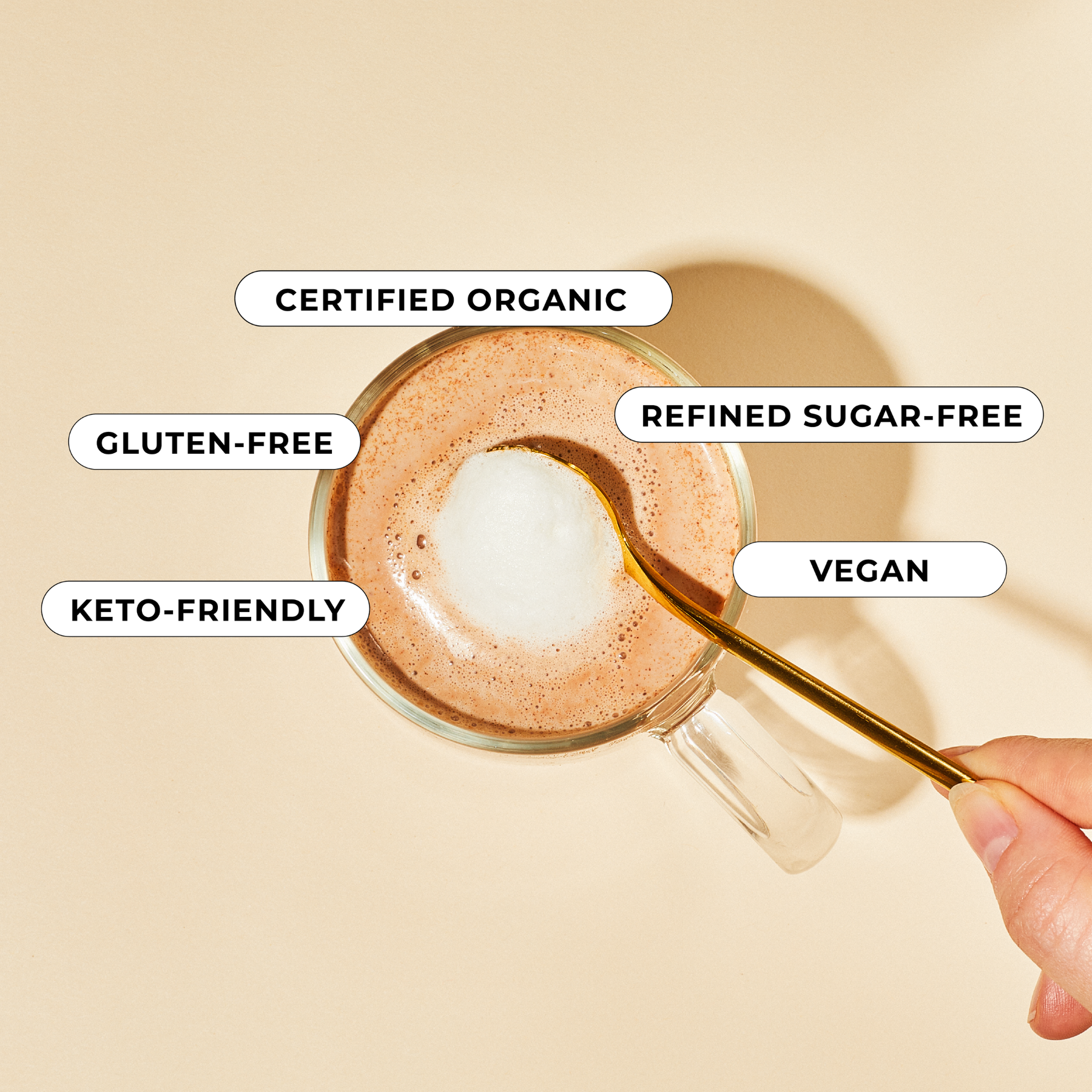 A rich, smooth and dark hot chocolate with just a hint of real peppermint. Cozy up with this winter classic reimagined with superfoods like organic maca.
